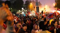 Supporters of President Recep Tayyip Erdogan celebrate in Istanbul.