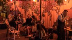 People gather and talk outside a terrace bar in central Kyiv.Credit: AP