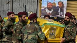 Hezbollah fighters carry the coffin of their comrade who was killed with three others on Saturday by an Israeli airstrike in south Lebanon.Credit: AP