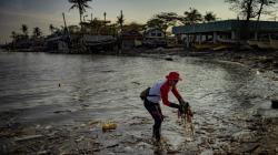 Workers collect debris, some stained with oil from the sunken tanker MT Terra Nova, along a beach in Noveleta, Cavite province, Philippines.Credit:Ezra Acayan/Getty Images